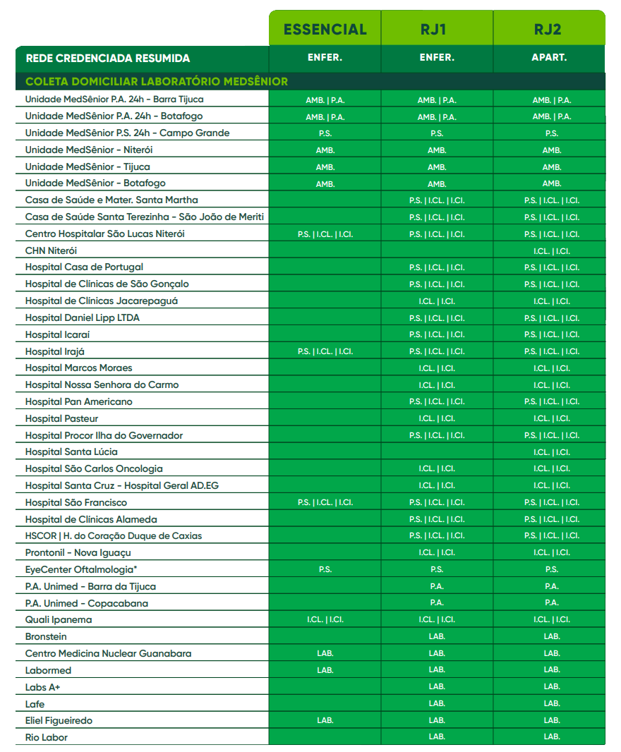 A MedSenior é uma plano exclusivo para a terceira idade, com a missão de promover maior conforto para os nossos beneficiários. A MedSenior é diferente dos outros planos que temos do mercado, pois ela não se preocupa apenas com os atendimento ambulatoriais e hospitalares, mas dispõe de um cuidado preventivo para todos os seus beneficiários. Por isso desenvolveu o Programa Medicina Preventiva. Nele, os clientes têm à disposição os Núcleos de Prevenção e especialidades, o Centro de Autonomia e Independência e as Oficinas de Saúde. A meta da MedSenior é cuidar da saúde de quem mais importa, você!